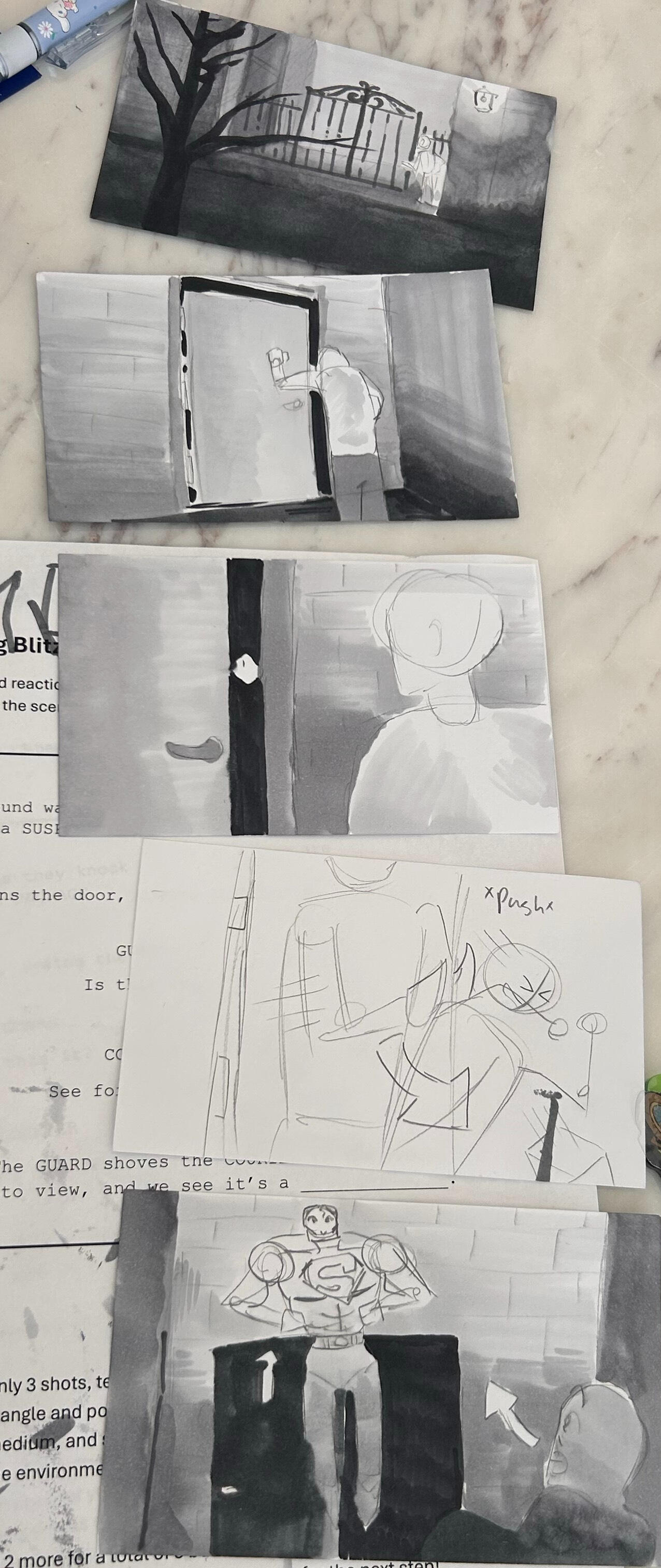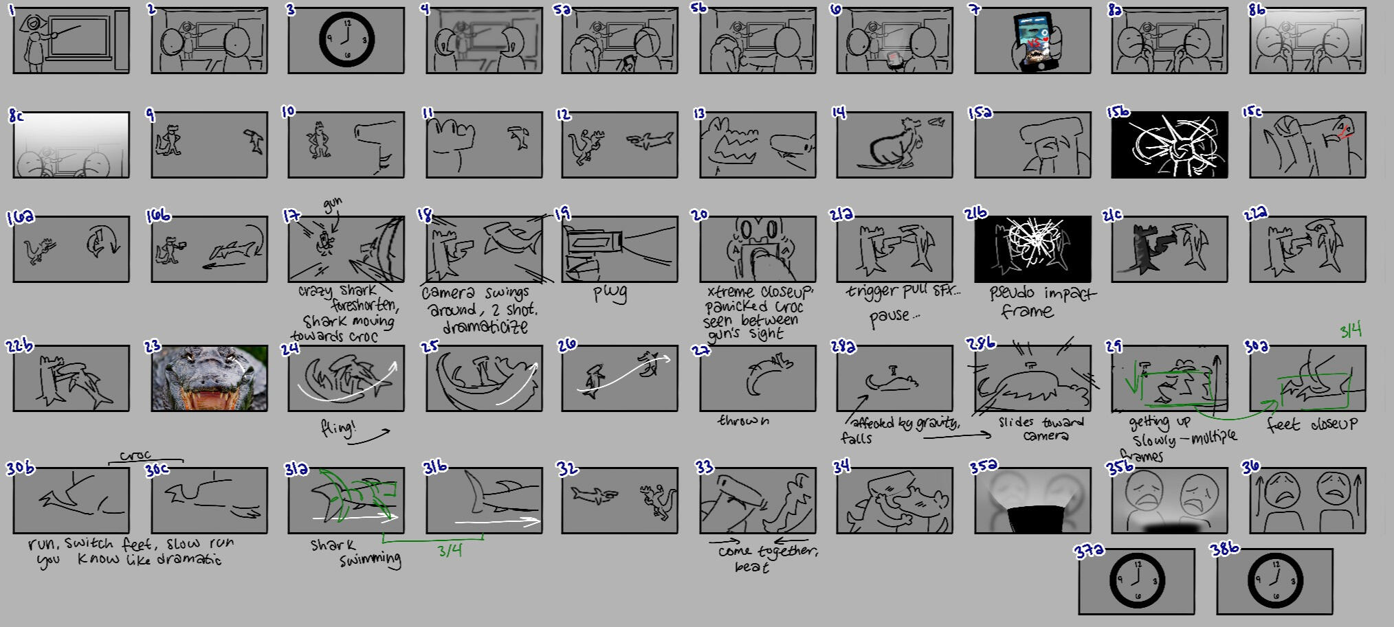 This process was almost completely improv-ed on the spot and the styles were drawn by each respective artist :3Logline: 2 students, freshly in school for the day imagines the tiktok scenario: crocodile versus shark.